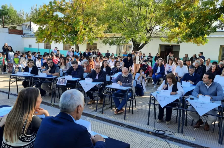 Tras las intervenciones de los concejales, tomaron la palabra directivos, docentes y alumnos de la institución. “Qué más identitario que la figura de Hilda Farías en la escuela, en el barrio”, expresó una docente, sintetizando el sentido del homenaje.