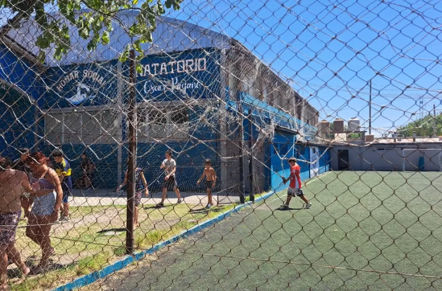 Respecto a las propuestas diarias, detalló que se desarrollan múltiples actividades recreativas y deportivas, junto con espacios artísticos. “Hacen actividades recreativas, practican deportes. Dentro de la rutina está el fútbol y también se entra bastante a la mañana en la pileta, donde los profesores les dan iniciación a la natación y juegos vinculados a eso. Después tienen su espacio de recreación y el área artística, donde trabajan con canciones y también crean una bandera del grupo”, desarrolló la responsable.