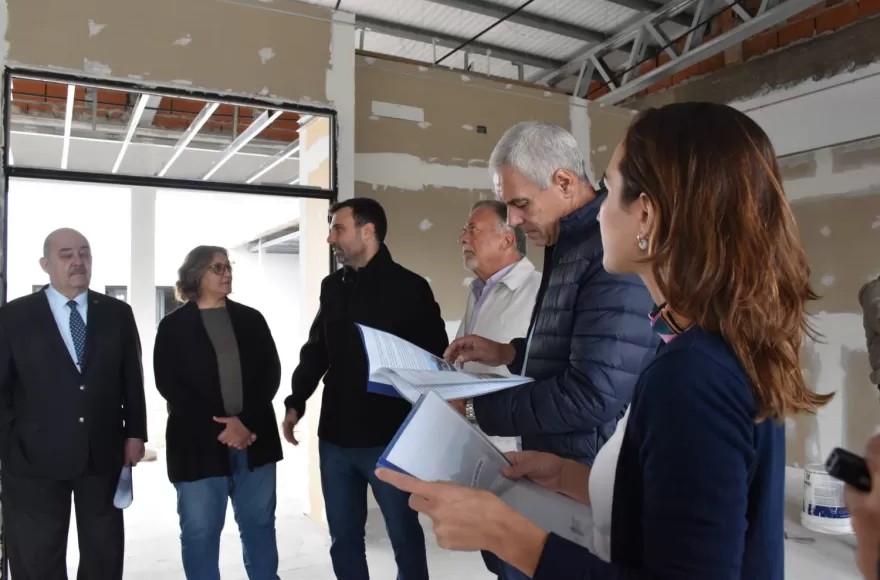 El intendente Fabián Cagliardi, junto al vicepresidente de la Universidad Nacional de La Plata, Fernando Tauber; el secretario de Salud municipal, Santiago Ramírez Borga; y el director de Políticas de Atención de Salud de la provincia de Buenos Aires, Maximiliano Salvioli, recorrieron la obra del nuevo Centro de Atención Primaria de la Salud N° 10.