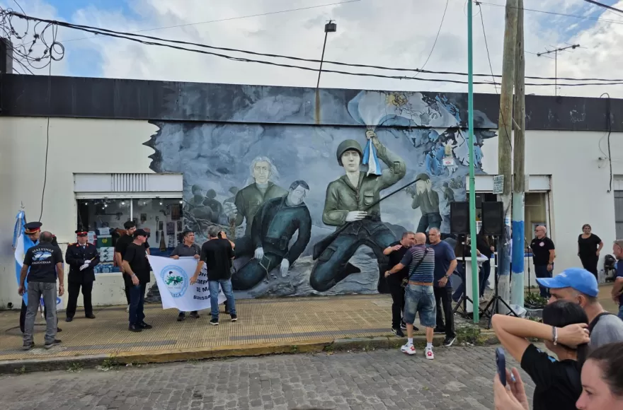 El recorrido culminó en la intersección de las calles 4 y Montevideo, donde se encuentra el mural que recuerda a los soldados caídos en el conflicto del Atlántico Sur. Allí se desarrolló el acto central, que contó con una importante participación de la comunidad.