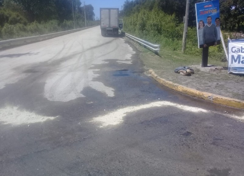 Minutos después, personal de la guardia de Defensa Civil se hizo presente en el lugar y constató que el inconveniente se debió a la rotura del tanque de un camión de combustible, más precisamente de gasoil.