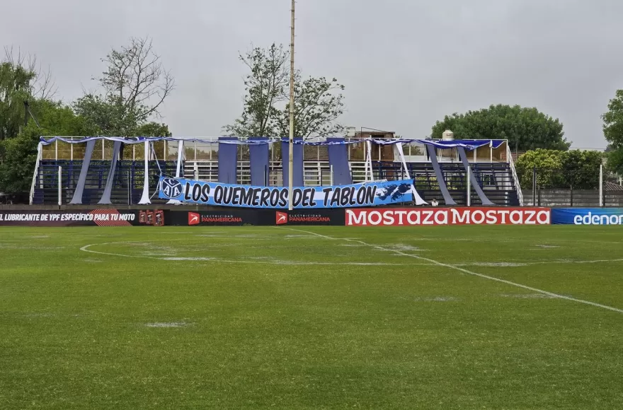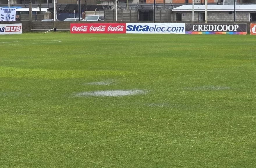 El árbitro Sebastián Bresba evaluó el estado del campo de juego y, ante los charcos formados y el deterioro del césped, resolvió que no estaban dadas las condiciones para disputar el encuentro.
