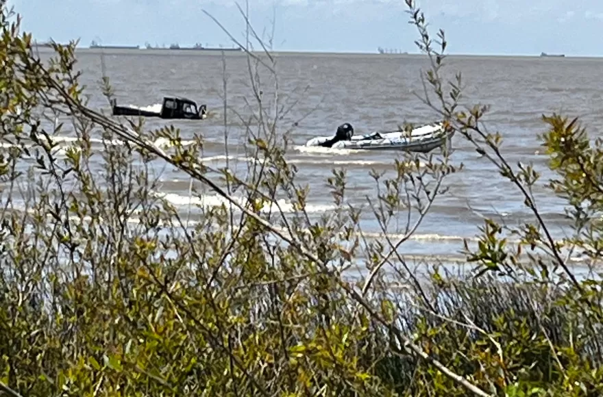 En efecto, la camioneta quedó empantanada y con agua en su interior, por lo que los jóvenes debieron salir nadando hacia la costa.