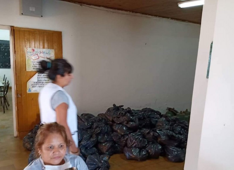 En la zona de La Franja, el punto de distribución fue la Escuela N° 24 donde se repartieron unas 100 bolsas de alimentos, mediante una labor que duró más de cuatro horas para hacer efectivo el cumplimiento del protocolo de sanidad y seguridad.