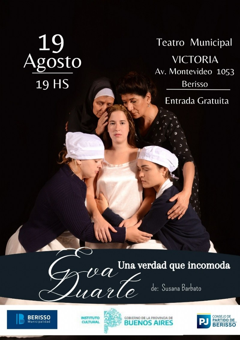 Con entrada gratuita, el viernes 19 de agosto a las 18 horas se presentará en el Teatro Municipal Victoria la obra “Eva Perón, una verdad que incomoda”, de Susana Barbato dirigida por Martín Hache.