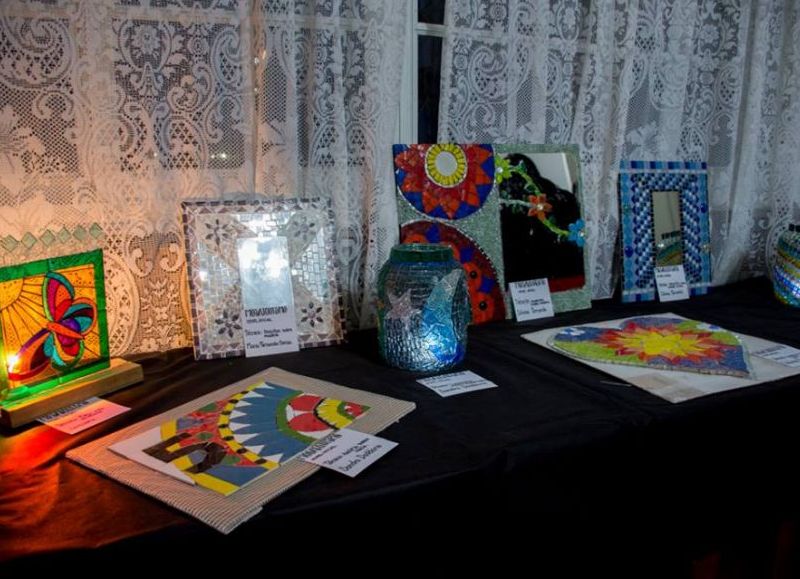 En la muestra de trabajos de mosaiquismo con la profesora, Gimena Coronel, se mostraron diferentes técnicas, herramientas y soportes con los que las alumnas vienen desarrollando sus trabajos.