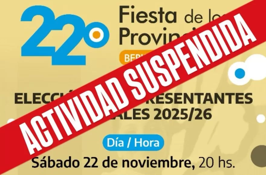 La Municipalidad informó que fue suspendida la elección de representantes de la Fiesta de los Provincianos, prevista para este sábado 22 en el Cine Teatro Victoria.