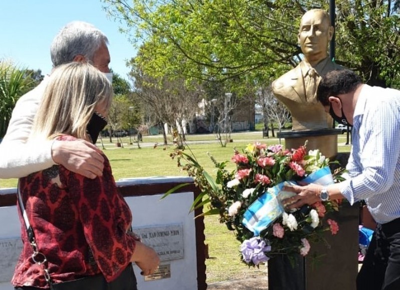 La ofrenda floral, como es habitual, fue colocada en el monumento ubicado en calle 10 y Avenida Montevideo, sitio puesto en valor recientemente por la Juventud Peronista