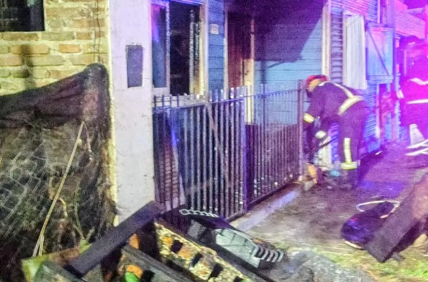 El 80 % de la vivienda, construida de chapa y madera, quedó destruida y lamentablemente los dos perros del propietario no lograron salir y murierona.