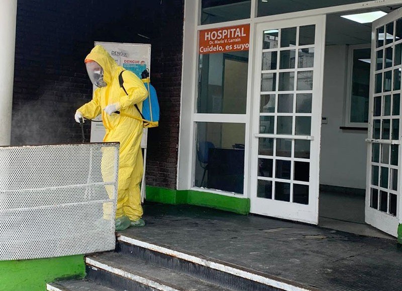 Entre los espacios que habitualmente se desinfectan se encuentra el frente y cada uno de los sectores del Hospital de Berisso “Mario Larraín” (sobre calle 5 y sobre calle 6); el local de IOMA en calle 9 y 166; y el frente de la Clínica Mosconi.
