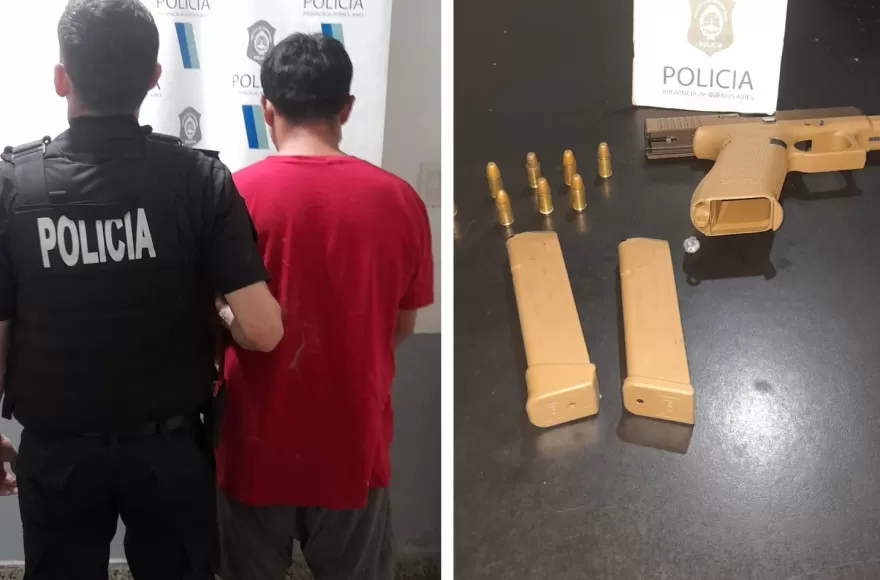 Ante la presencia de testigos, el personal policial realizó una requisa del vehículo del denunciante, donde se halló una pistola semiautomática marca Glock calibre 9x19 mm, de color marrón, con ocho municiones, dos cargadores —uno de ellos vacío— y un cartucho suelto. El arma se encontraba desarmada y fue secuestrada de manera preventiva.