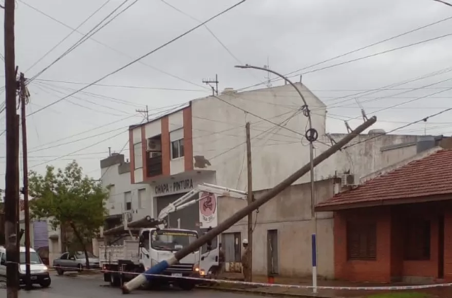Tras el intenso temporal de viento y lluvia de la tarde de este jueves, más allá de las ramas de los árboles, hubo dos postes que sufrieron consecuencias.