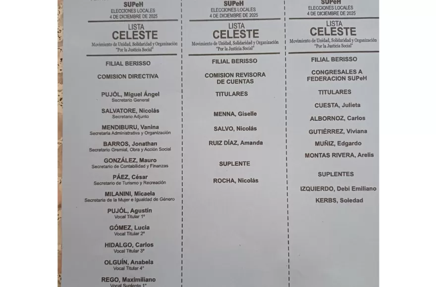 Con un mensaje que combina celebración por la renovación gremial y preocupación por la economía, SUPEH Berisso se prepara para iniciar una nueva etapa de gestión sindical en un contexto que exige diálogo, organización y acompañamiento a los trabajadores, con la siguiente lista que se presentó.