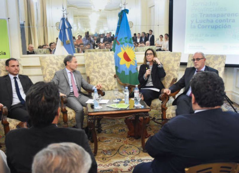 El encuentro, que tuvo lugar en el Salón Dorado del Honorable Senado de la Provincia contó con la presencia del vicegobernador Daniel Salvador, el ministro de Justicia Gustavo Ferrari, la secretaria de Ética Pública, Transparencia y Lucha contra la Corrupción de la Nación Laura Alonso y Fernando Sánchez, secretario de Fortalecimiento Institucional de la Jefatura de Gabinete de la Nación.
