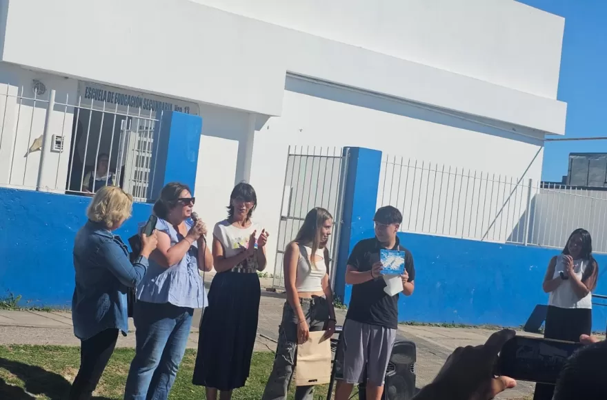 El trabajo fue realizado por los artistas Mónica Durruty, Mauricio Ochoa y Guillermo Jara, en una presentación que contó con la participación de la inspectora jefa distrital Susana Aguirre Ponce, la presidenta del Consejo Escolar Paola Ovejero, el director de la EES 13 Walter Emeri, docentes, alumnos, miembros de Cooperadora e integrantes de la comunidad escolar del establecimiento educativo.