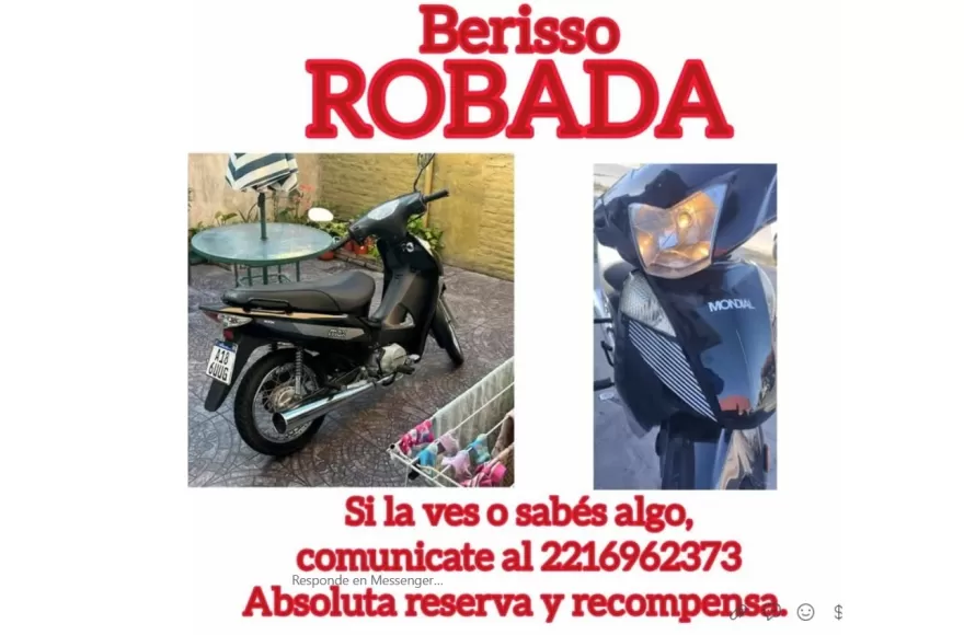 “Si la ves o sabés algo, comunícate con al 2216962373. Absoluta reserva y recompensa”, completa el mensaje dirigido a toda la comunidad.