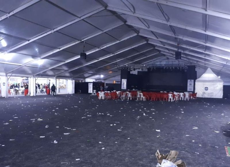 Según explicaron, los fuertes vientos generaron el desprendimiento del caño que pesa no menos de 30 kilos, y de inmediato tanto personal de Defensa Civil de la Municipalidad de Berisso como personal de Bomberos Voluntarios procedieron a evacuar la carpa central donde se produjo el hecho.