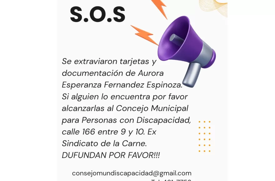 “Si alguien encuentra por favor alcanzarlas al Consejo Municipal para Personas con Discapacidad, calle 166 entre 9 y 10 - Ex Sindicato de la Carne”, solicitaron.
