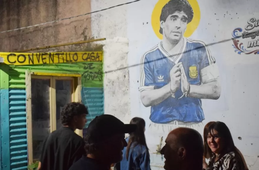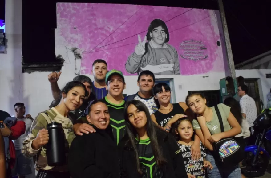 Este sábado al atardecer se realizó la muestra en homenaje a Diego Armando Maradona en el histórico barrio Nueva York, de la mano de los muralistas de Cipriano Gambeta.
